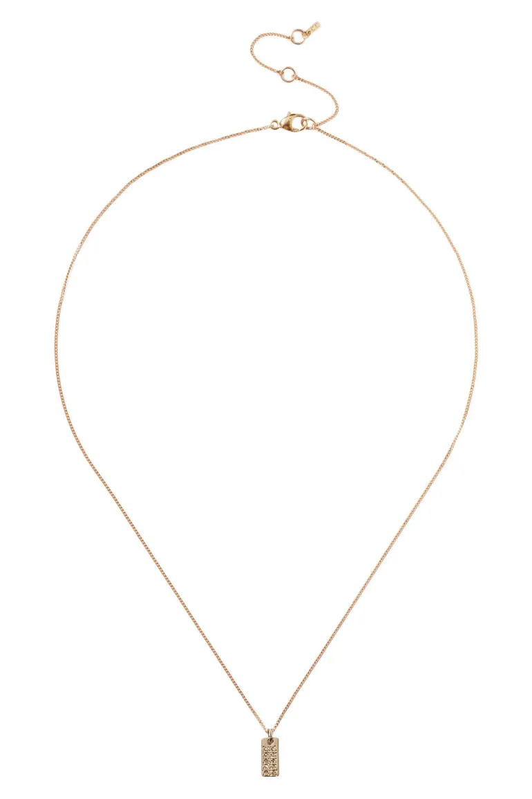 - This 14k solid gold necklace features two rows of shimmering champagne diamonds dotted along a petite gold bar pendant.