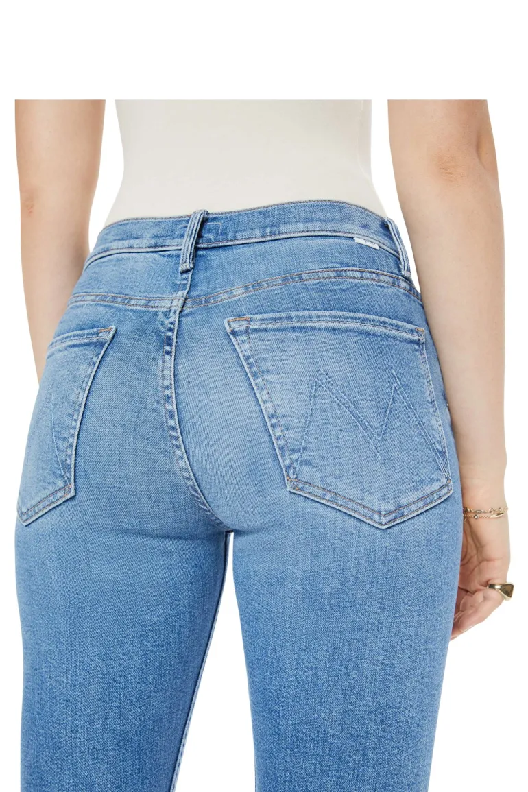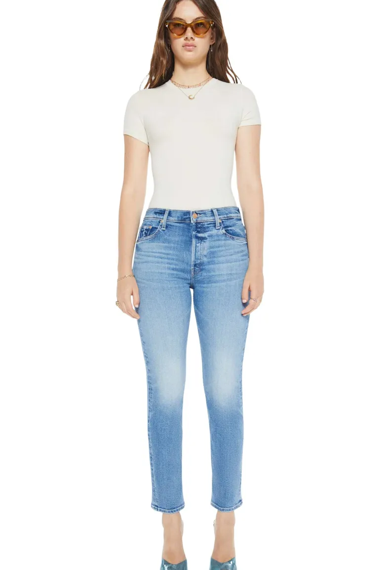 High-rise jeans with a straight leg, button fly and a 28.25-inch inseam with a clean hem.