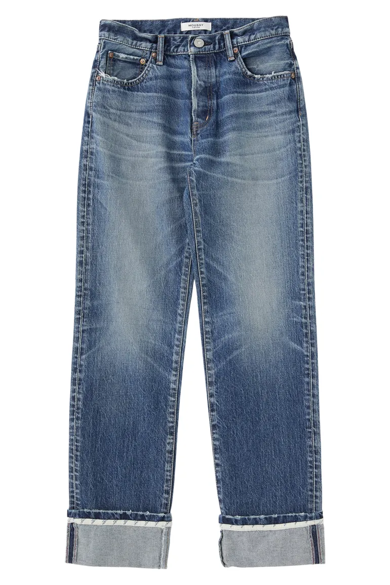 MOUSSY VINTAGE “Sumterville” straight-leg jeans featuring a cuffed hem in faded medium-wash denim