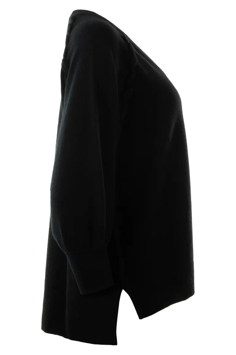 Repeat Cashmere V-neck Whipstitch Sweater in Black