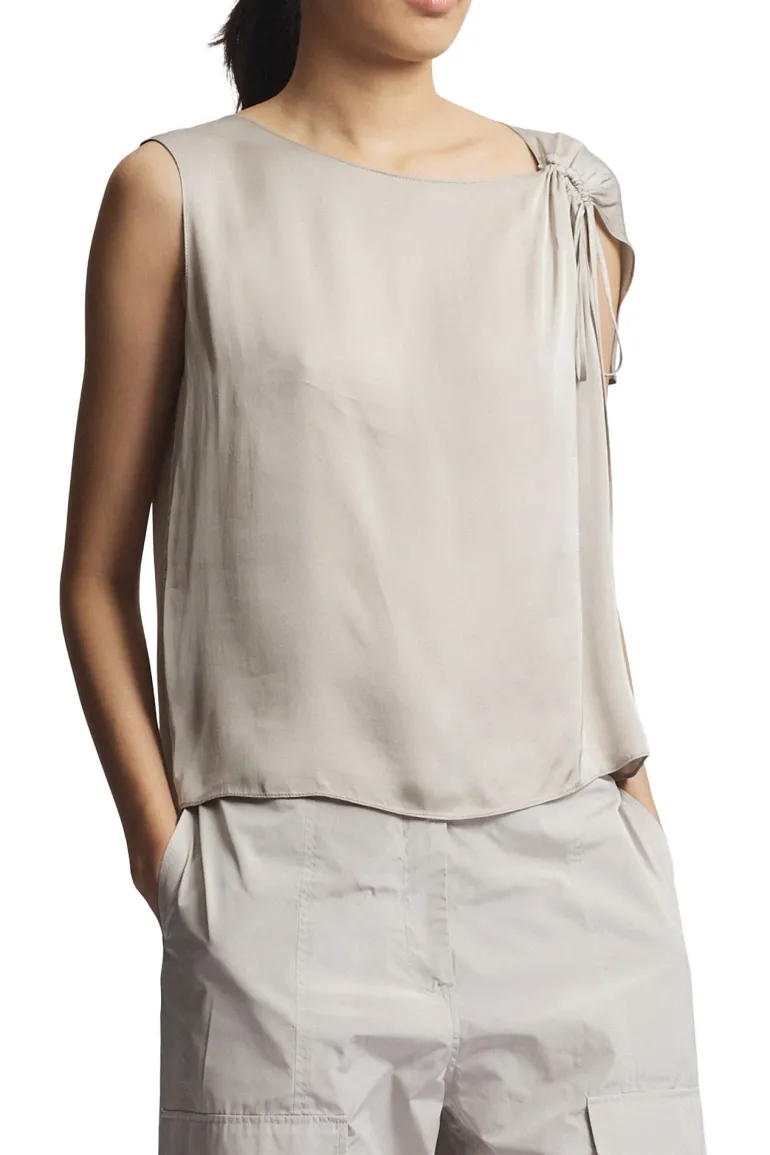 - Made with viscose shine fabric and featuring an adjustable tie on the shoulder, this versatile top is an easy and classic staple for any wardrobe.