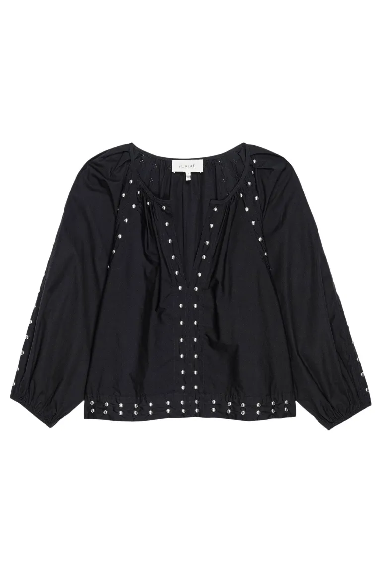 Experience the edgy and sophisticated style of The Bodega Top adorned with studs.