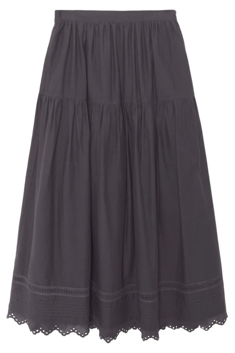Xirena “Tilda” midi skirt with pintuck details and scalloped eyelet hem