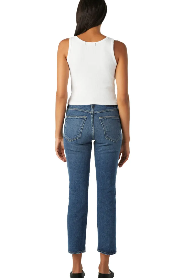 A high rise, straight, cropped leg jean that hits just above the ankle is a wardrobe staple.