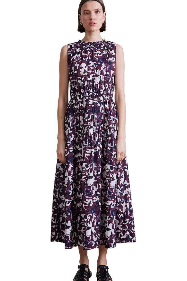 Elastic crew neckline, sleeveless, gathering along neckline and waist creates soft volume throughout, softly fitted elastic at waist