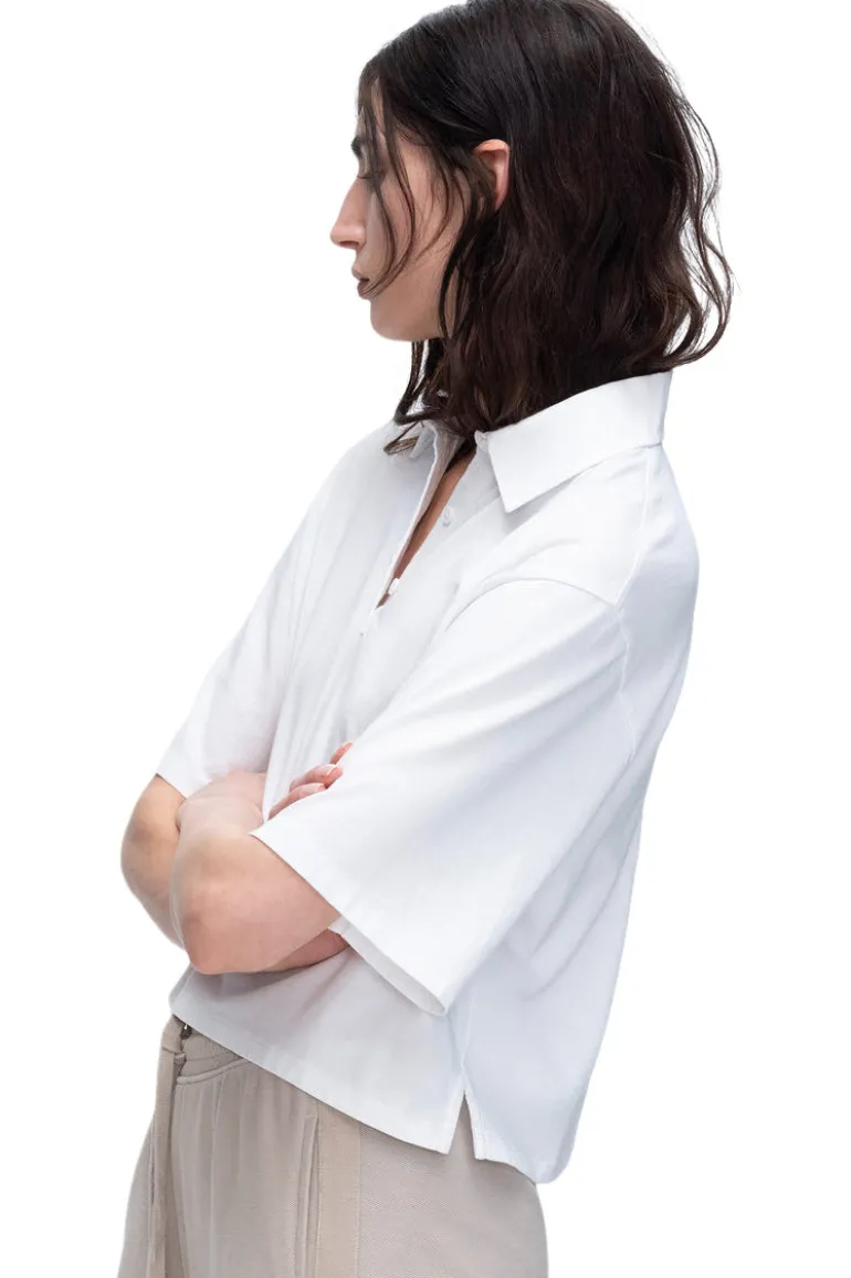 The Heavyweight Jersey Mixed Media Short Sleeve Polo reimagines a classic with a modern edge.