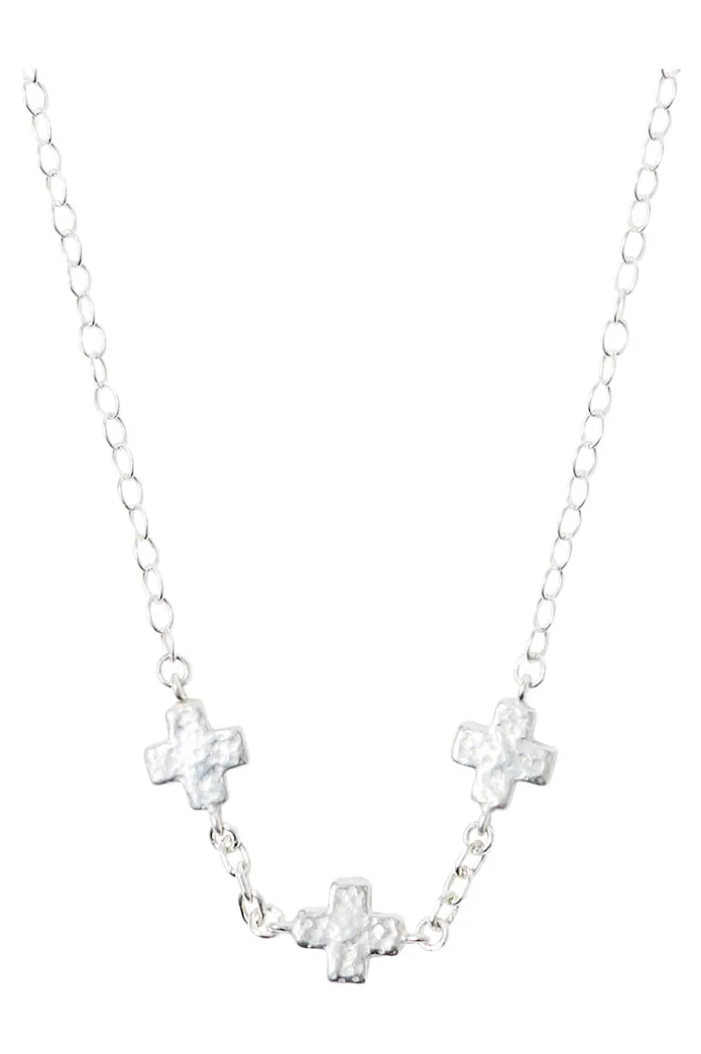 Sterling silver necklace featuring textured cross links.