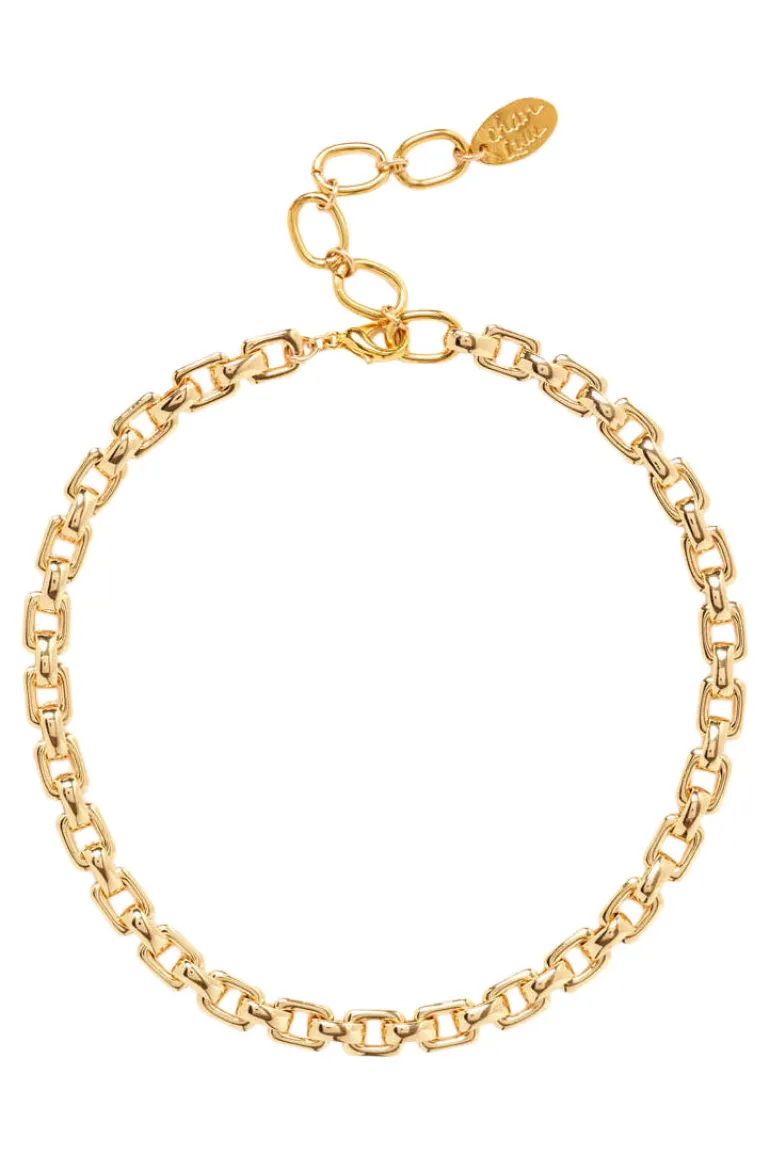 Gold puffy square chain link necklace.