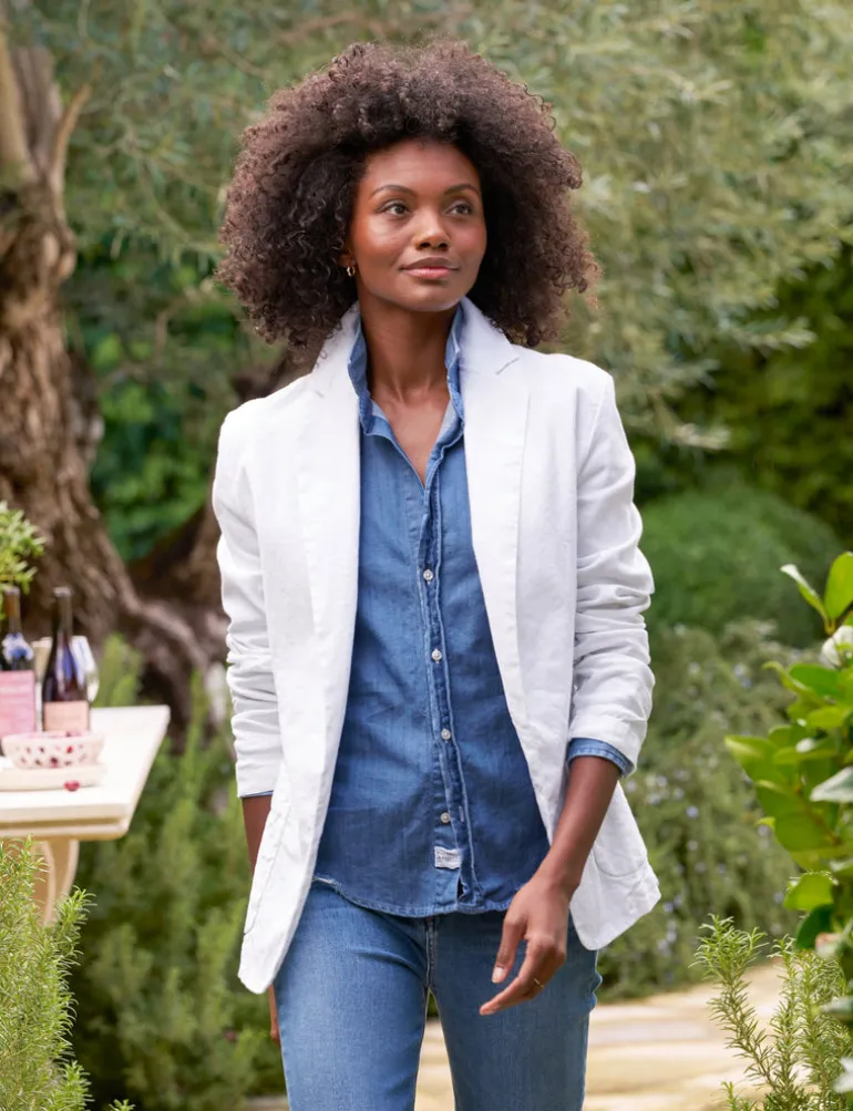 - Designed with versatility in mind, wear this stretchy blazer from the farmer’s market to meetings and more.