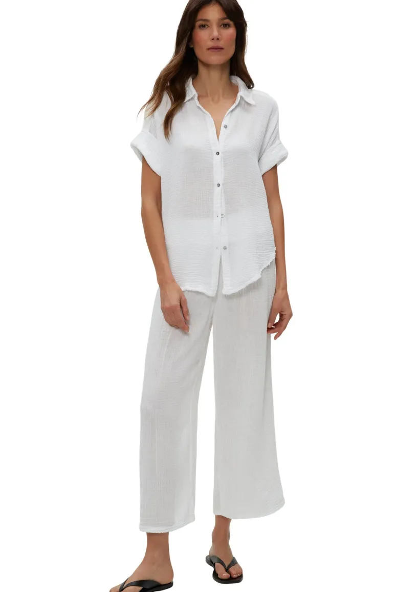 Effortless and light, Bailey has rolled short sleeves, a button up silhouette and a raw-edge hem with an easy fit.