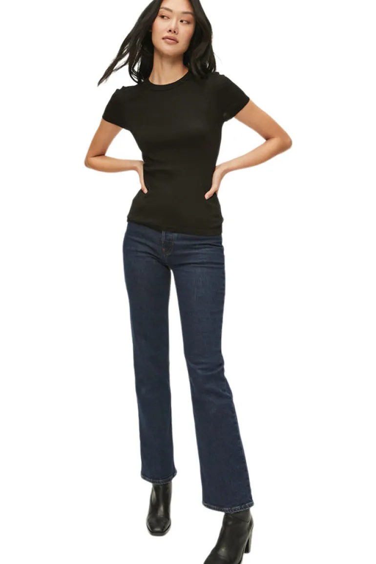 With a little bit of sparkle, this signature cotton blend Shine fabrication gives this banded crew neck tee a subtle sheen.