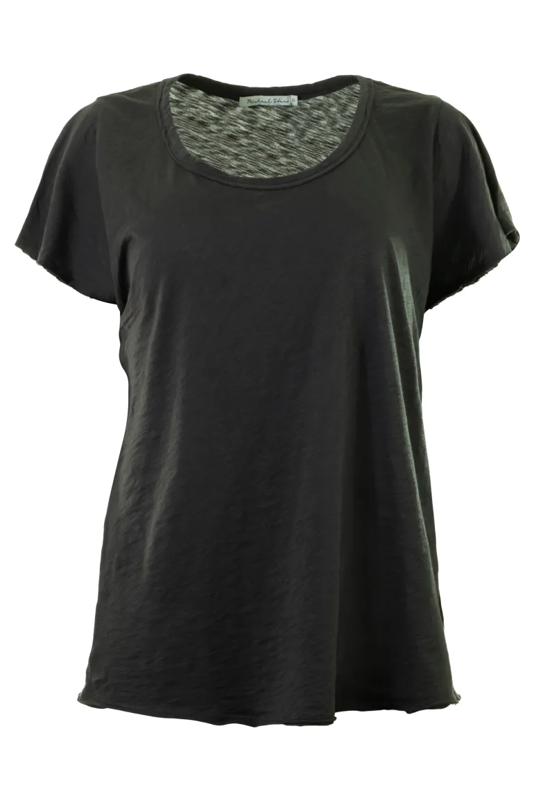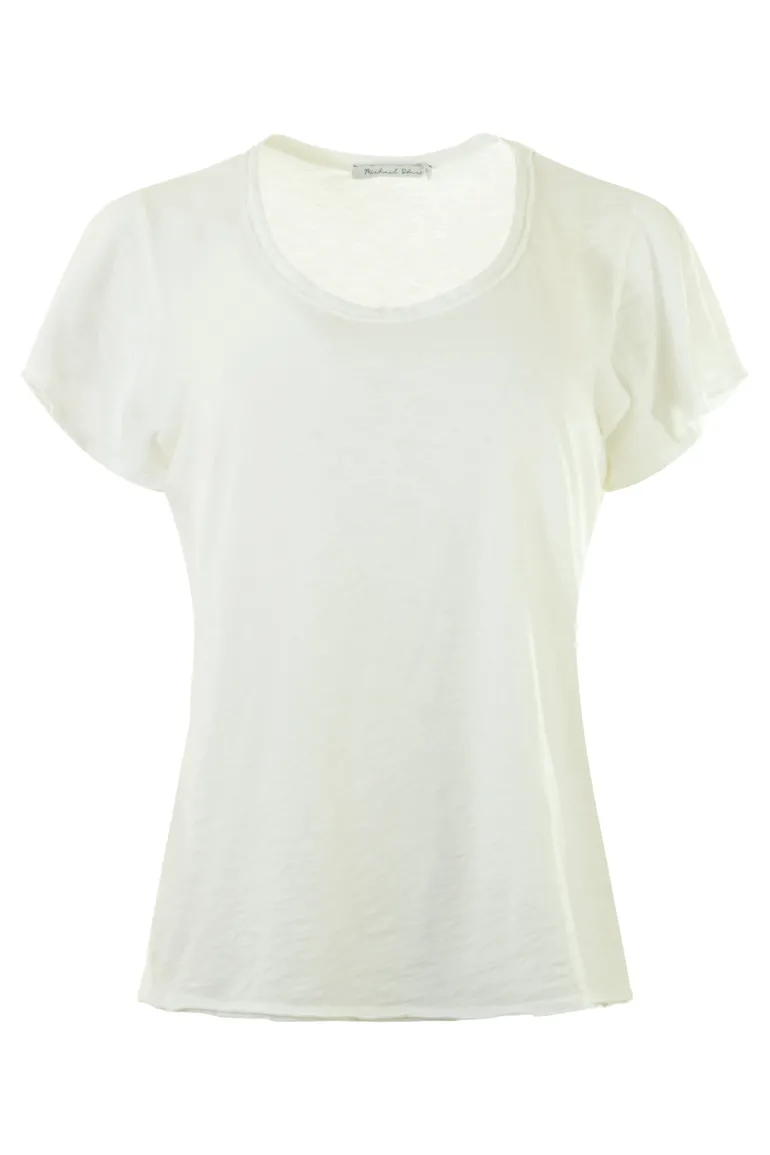 Short Sleeve Scoop Neck Tee with Flutter Sleeves