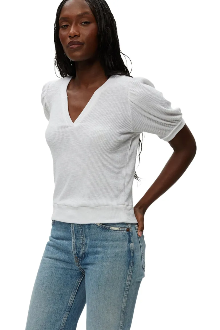 Pepper your look with feminine details. Get there with delicate and thoughtful accent like this subtle puff sleeve and a spliced neckline that bares just enough.