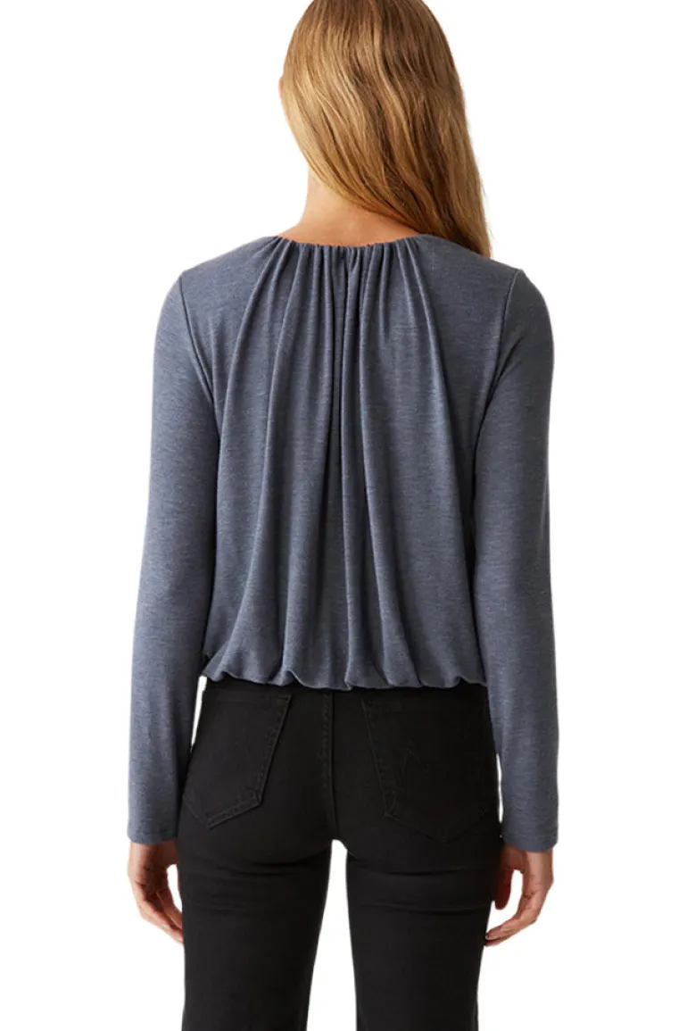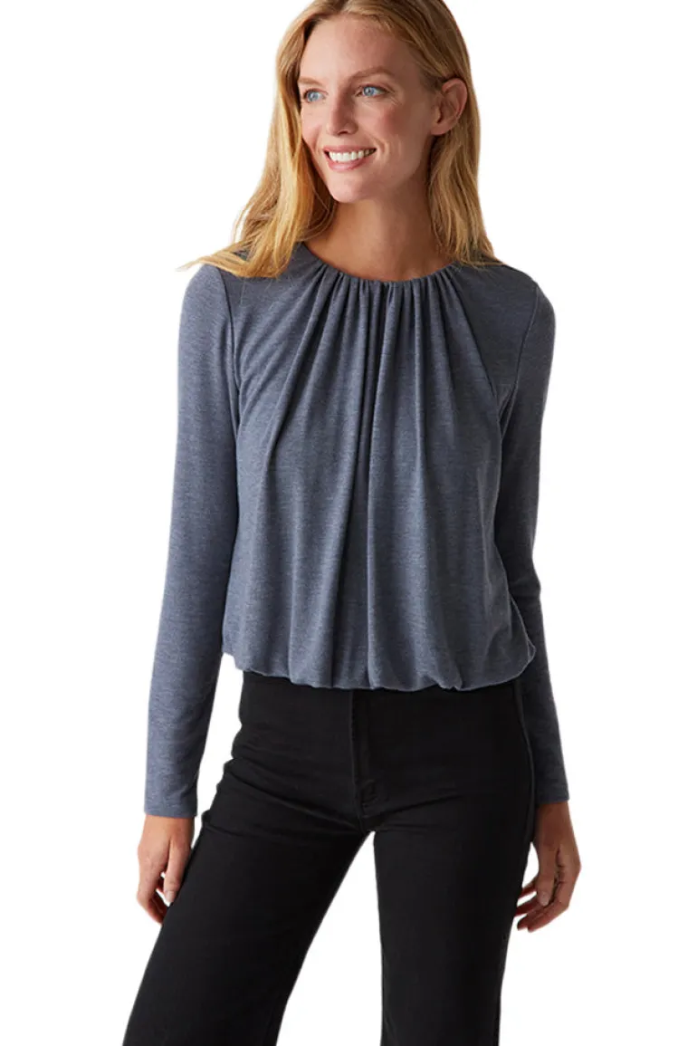 - This drapey top features a jewel neckline and fitted long sleeves. Wear yours with tailoring or denim.