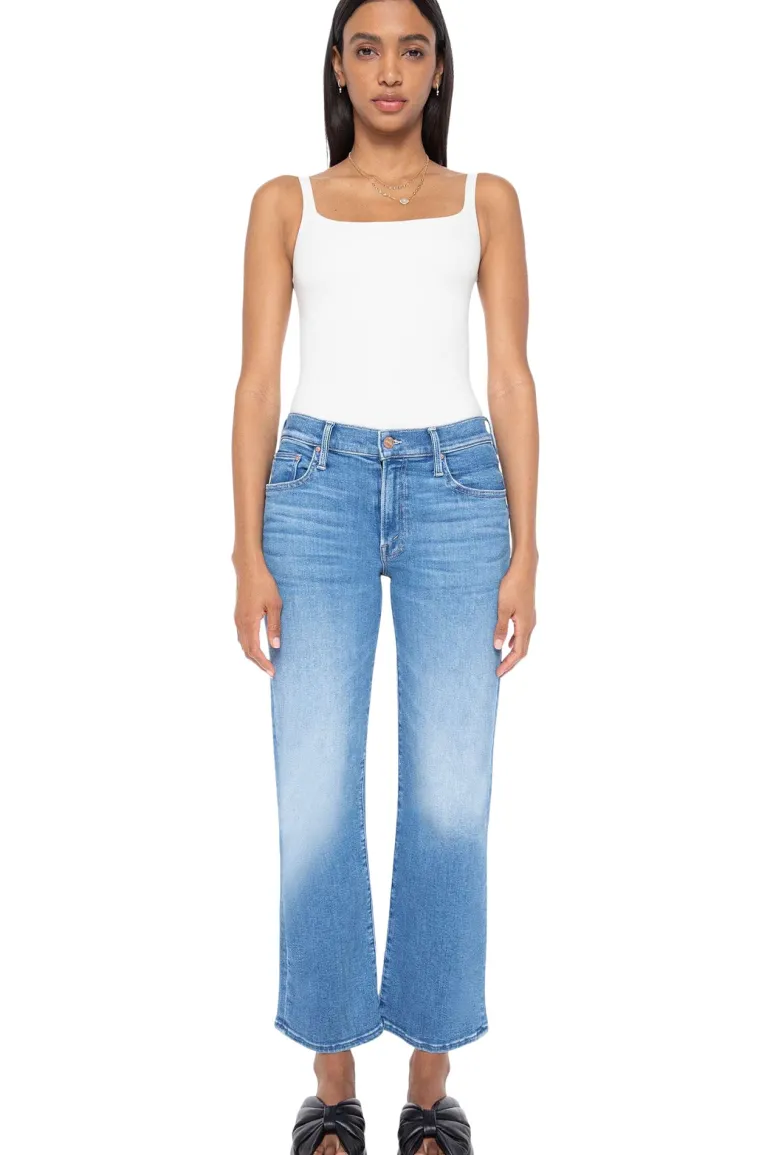 Mid-rise jeans with a wide straight leg, zip fly and clean ankle-length inseam.