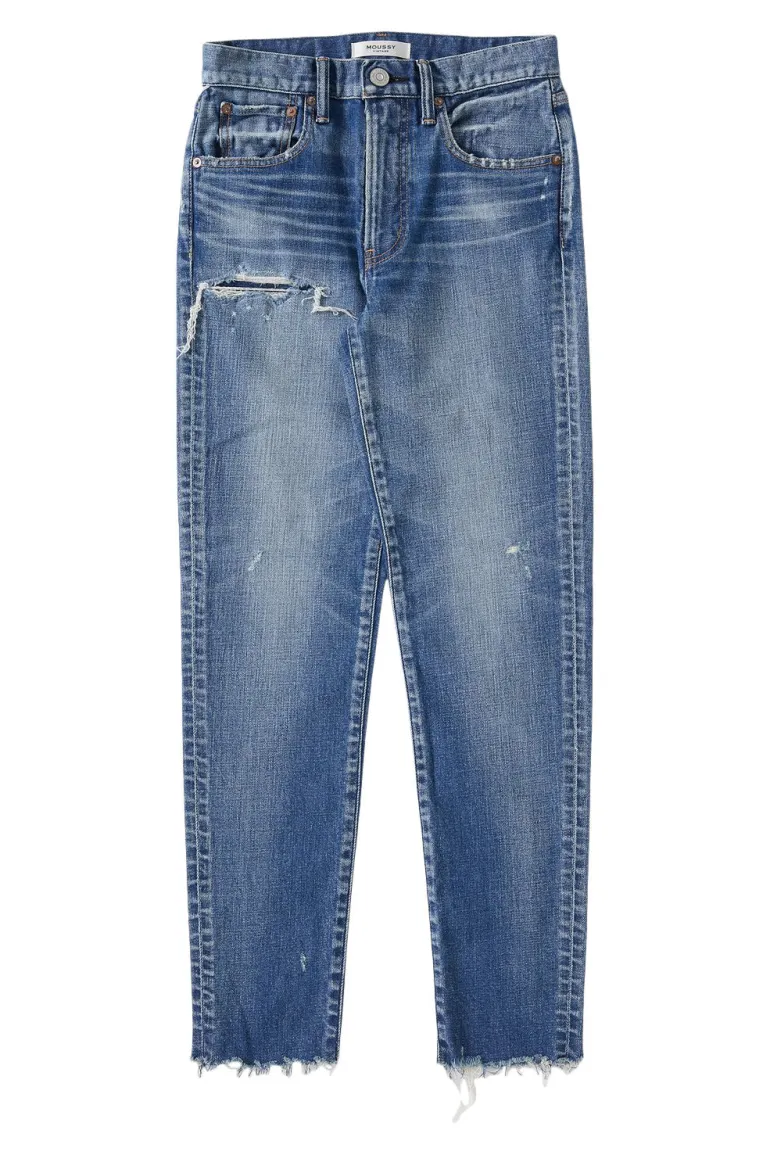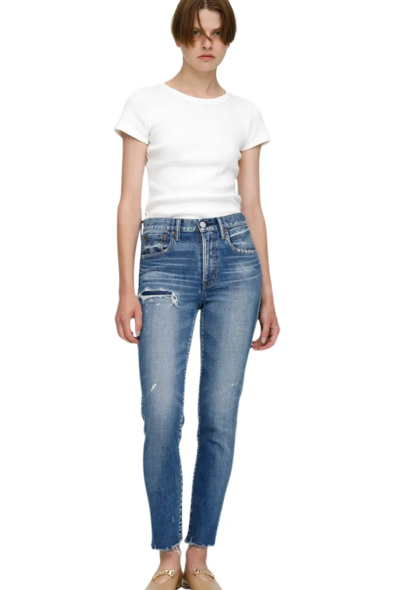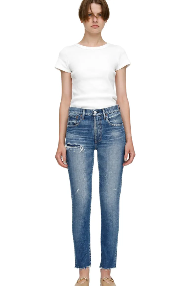 Essential skinny jeans with allover distressing and a cropped frayed hem.