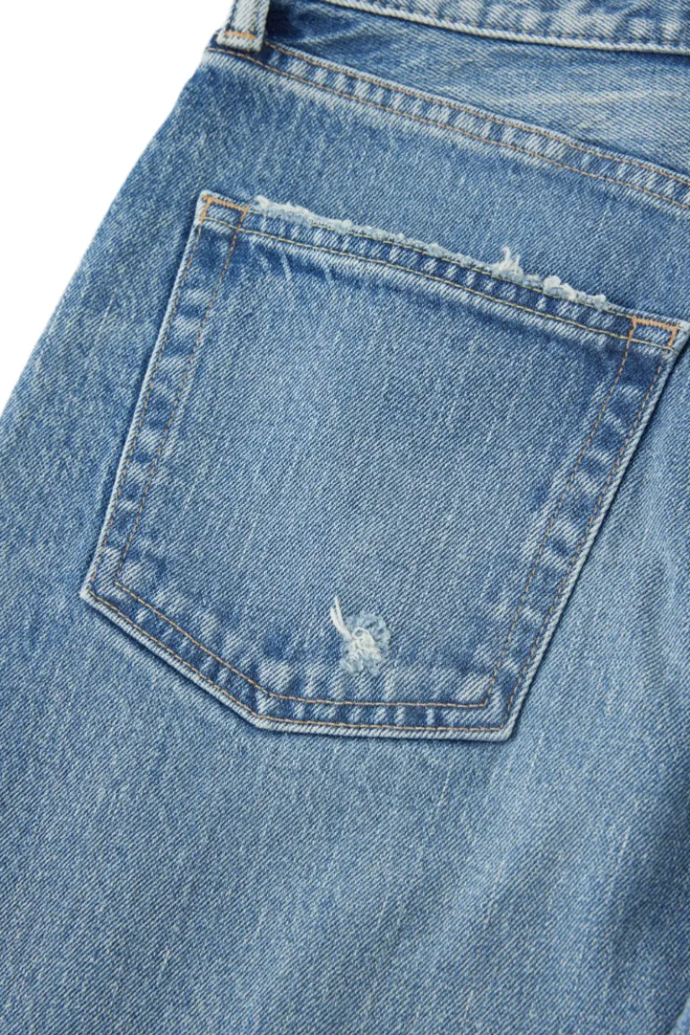 - Button-fly; belt loops