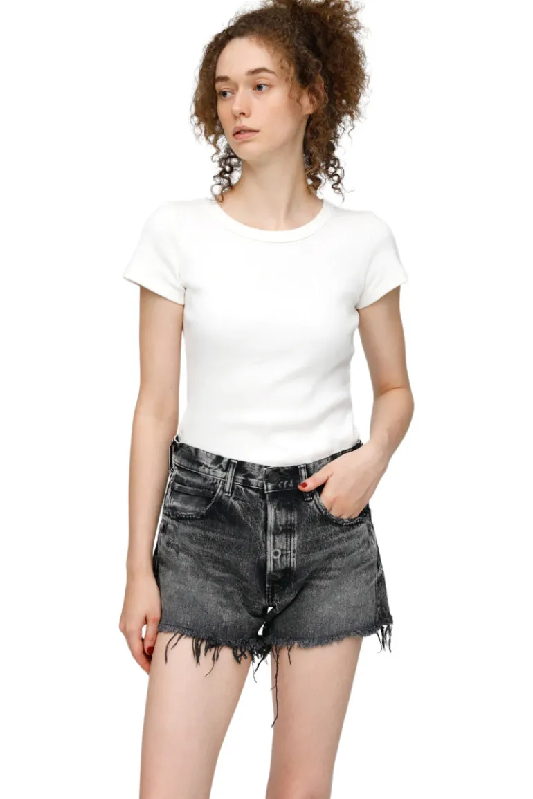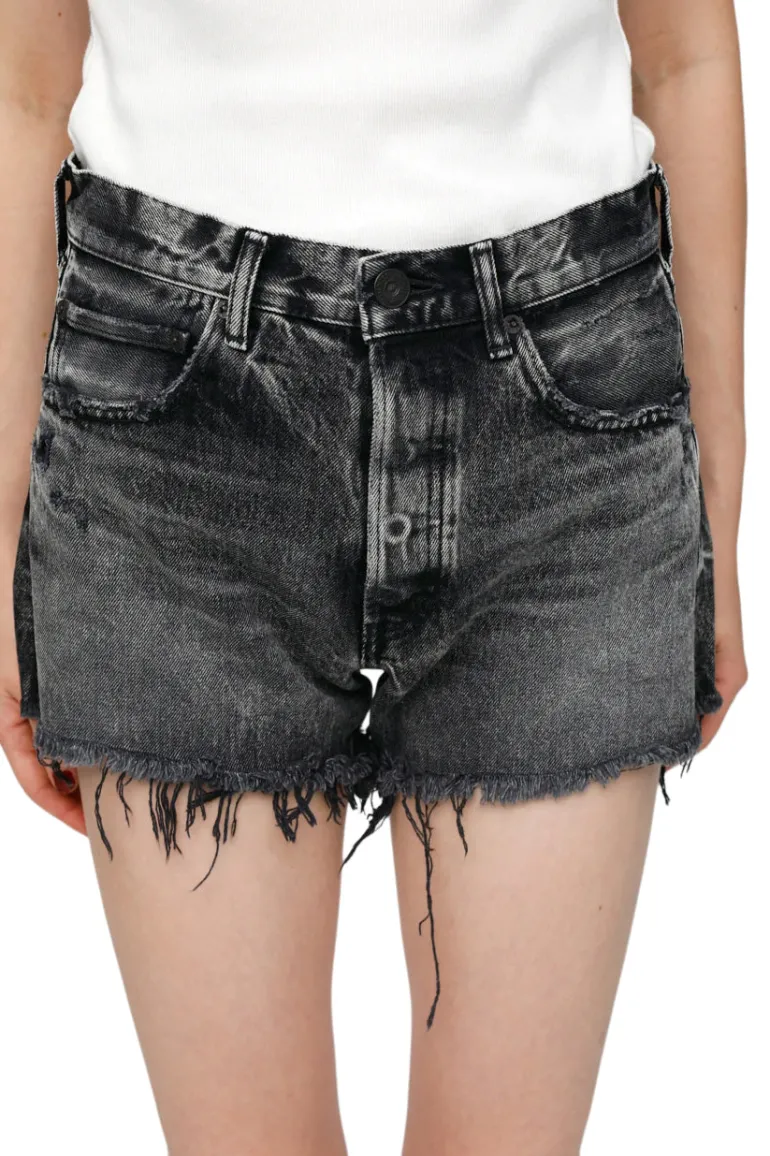 Black high-rise denim shorts
