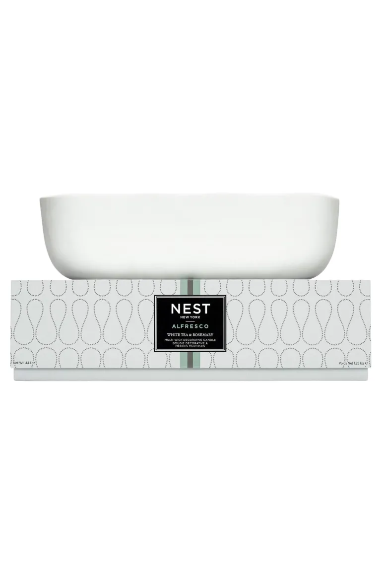 Designed for use in and outdoors, this scented candle is part of the Alfresco Collection and features notes of white tea and rosemary with hints of crisp mint and cedarwood to create the aroma of a fresh herbal garden.