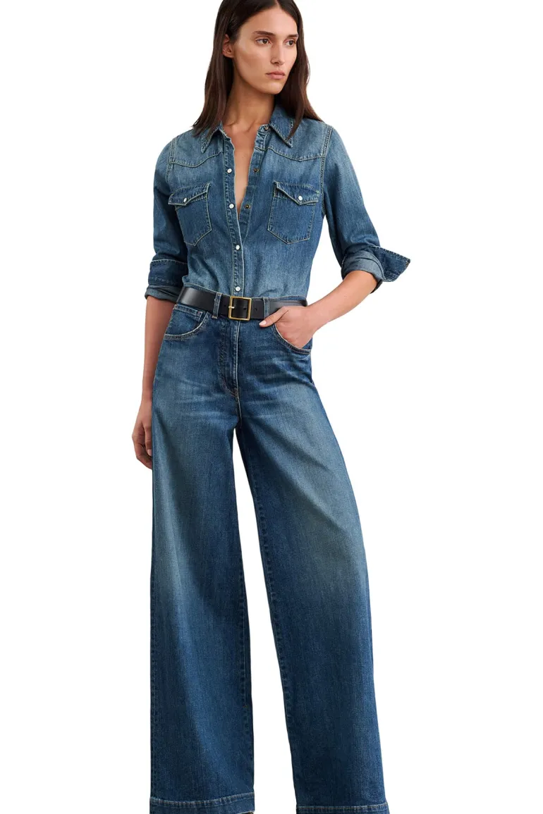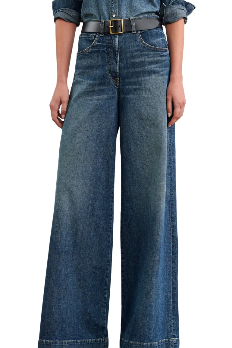 Mid-rise, relaxed super wide leg jean in non-stretch Japanese denim.