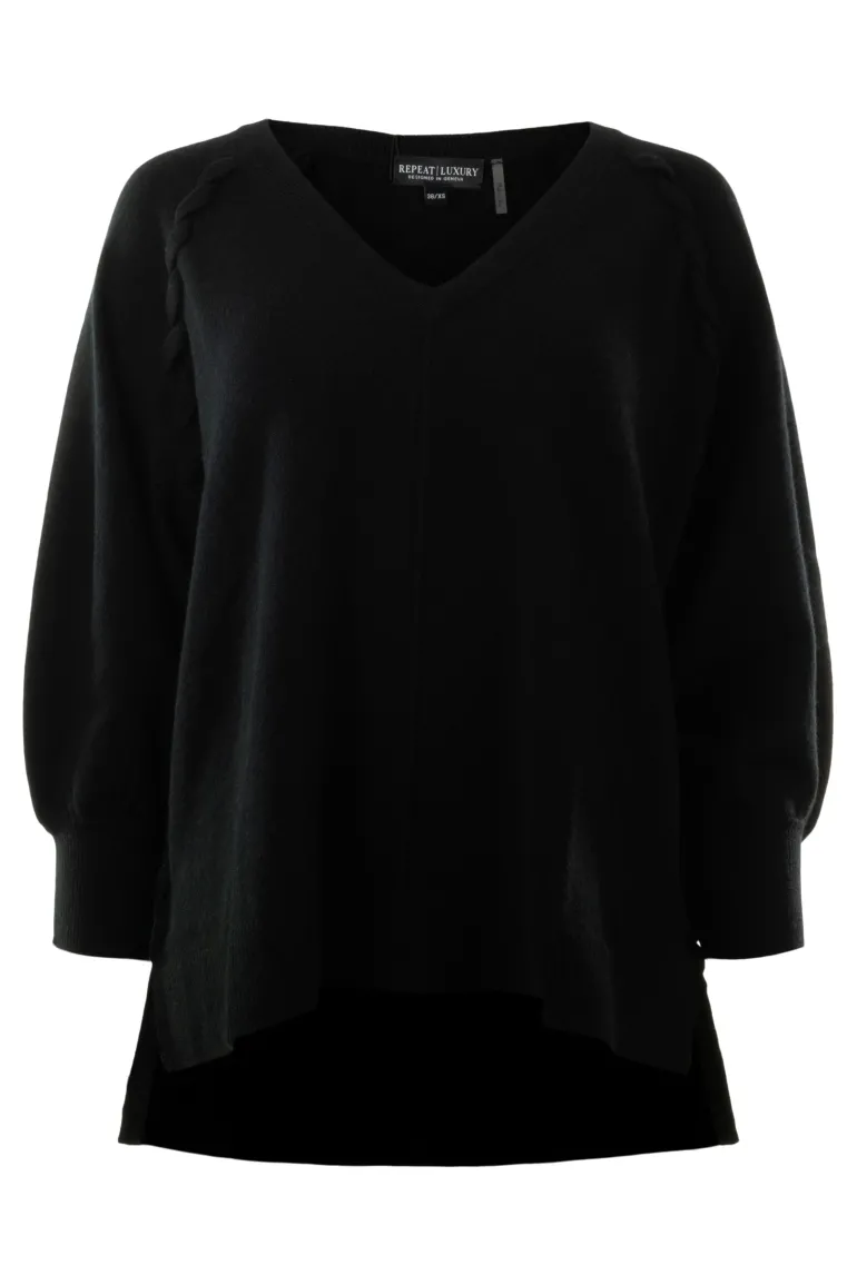 Repeat Cashmere V-neck Whipstitch Sweater in Black