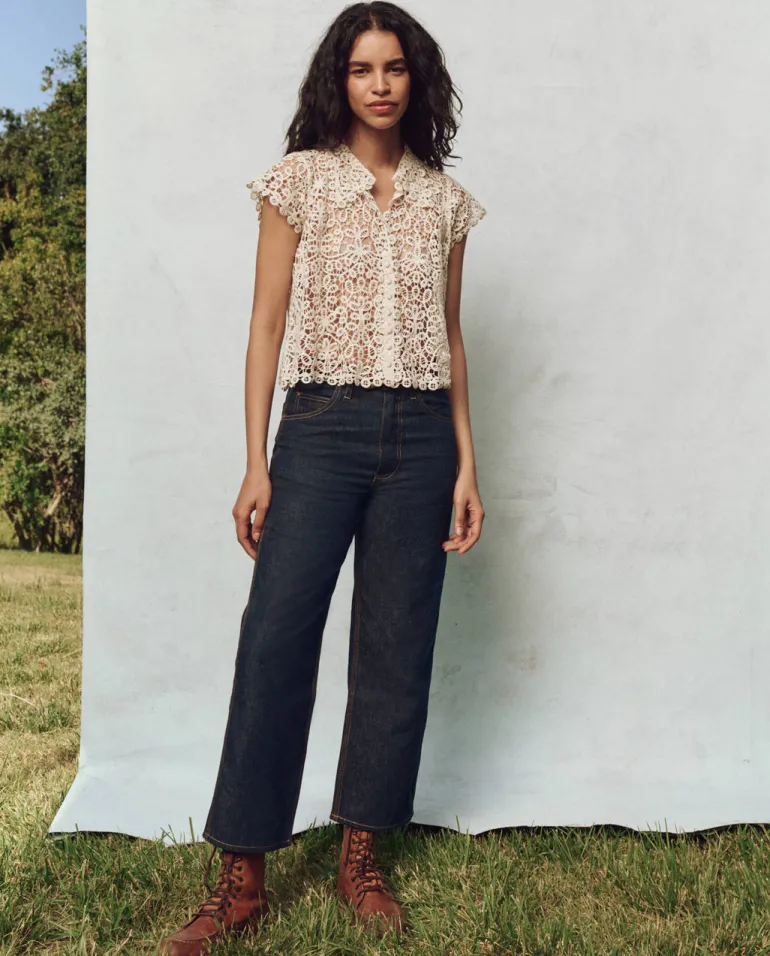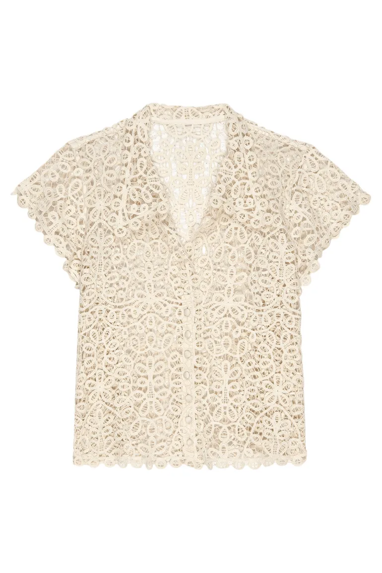 - Inspired by a vintage 1930s lace blouse, it features a peaked cap sleeve, a collar, and a boxy fit through the body.