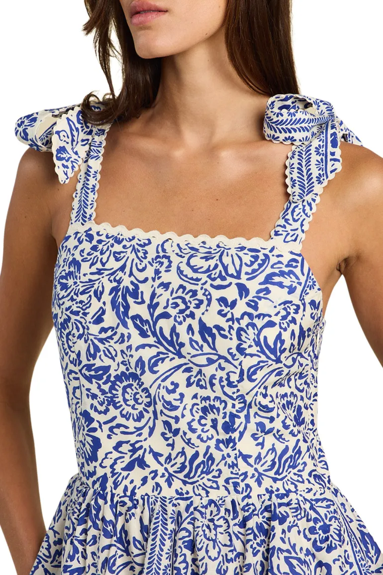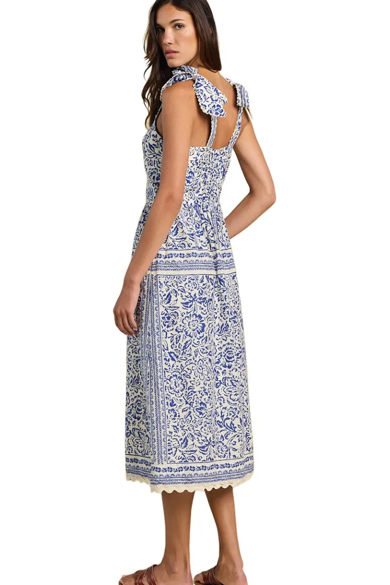 - Completed with antique white buttons and matching self-fabric straps at shoulders.
