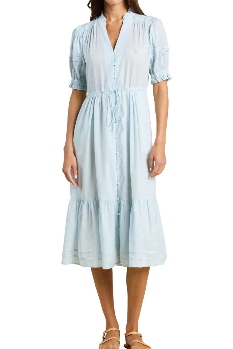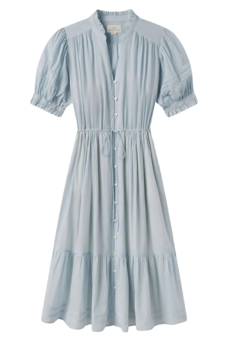 The Berenice Dress is a short-sleeve day dress, with a delicate waist drawstring for seamless adjustability.