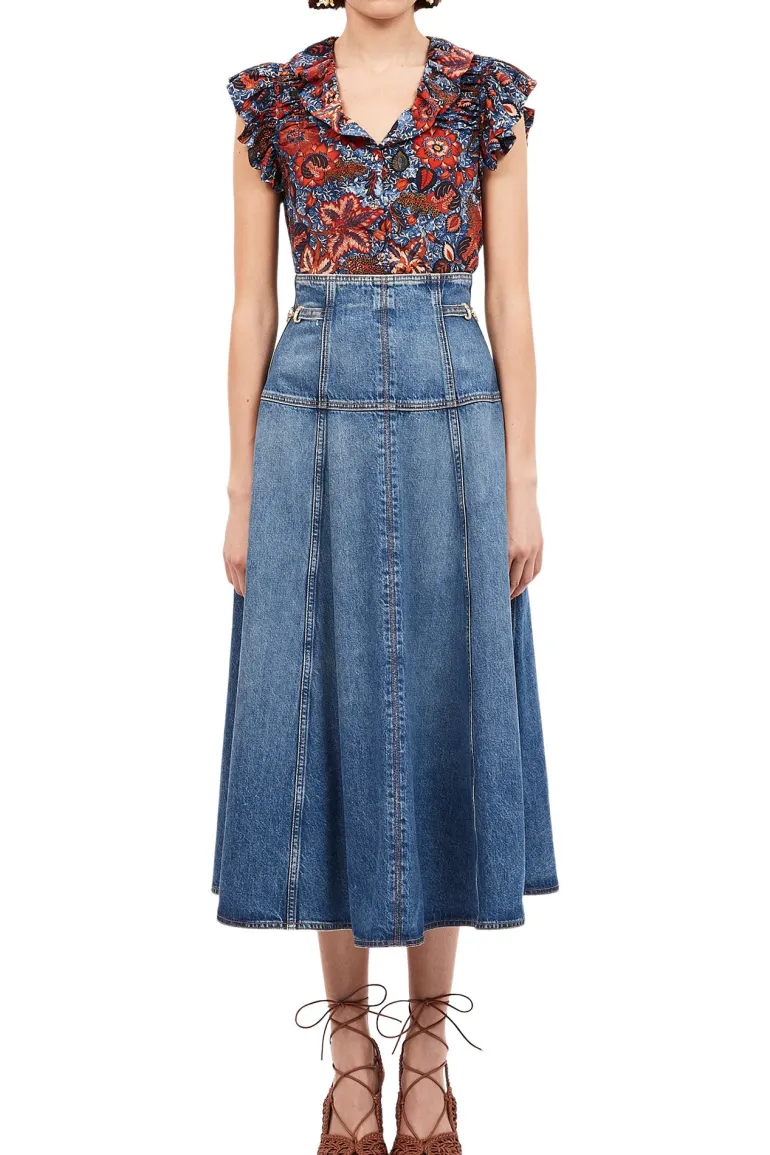 Ulla Johnson “Ivette” floral-print top with ruffles and shirred detailing