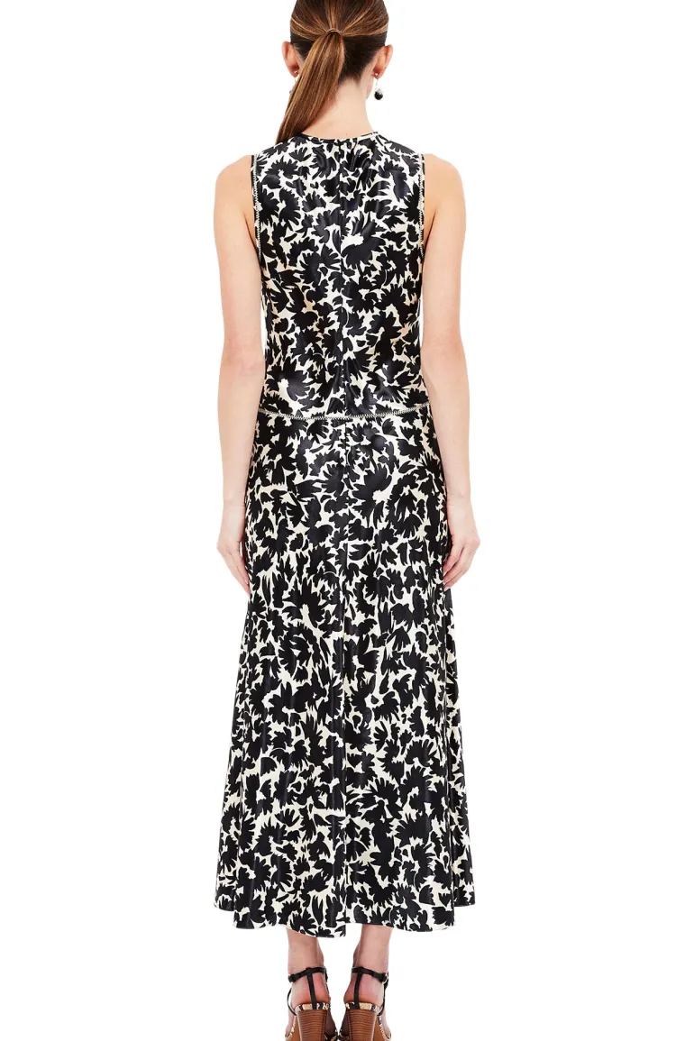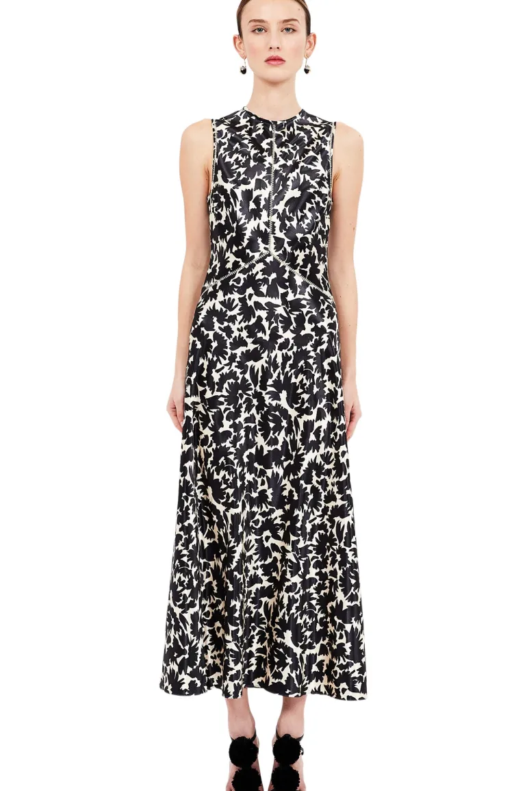 The Lisbet Dress features thin straps, a ruffled neckline, and a bodice with elastic smocking.
