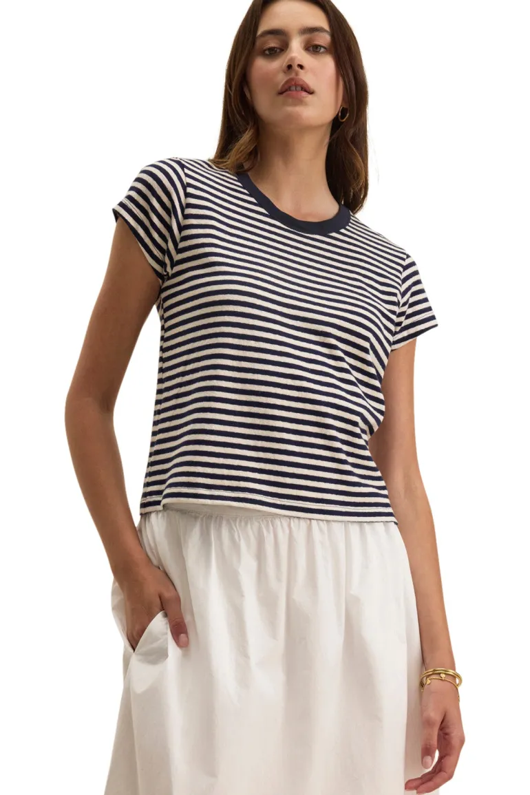 Made from striped cotton jersey with a hint of stretch, this tee features a classic crew neckline and short sleeves.