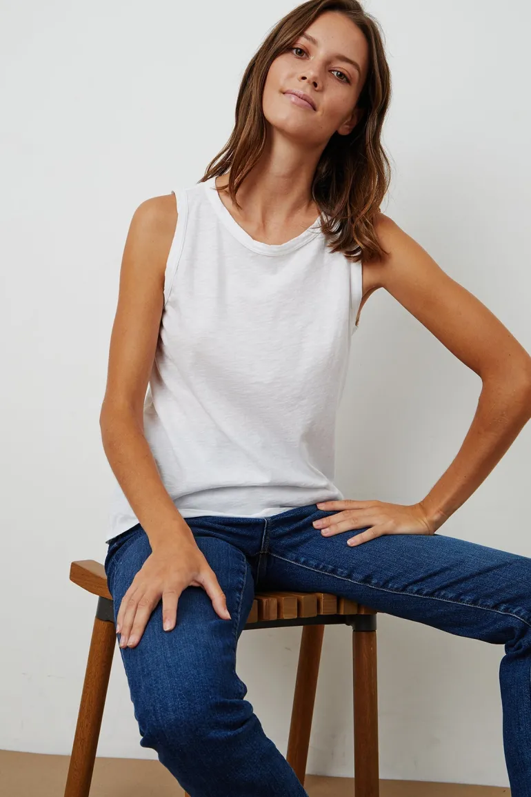 This tank nails the aesthetic. Cut from classic cotton slub, it has a flecked heather texture and feels as soft as an old favorite.