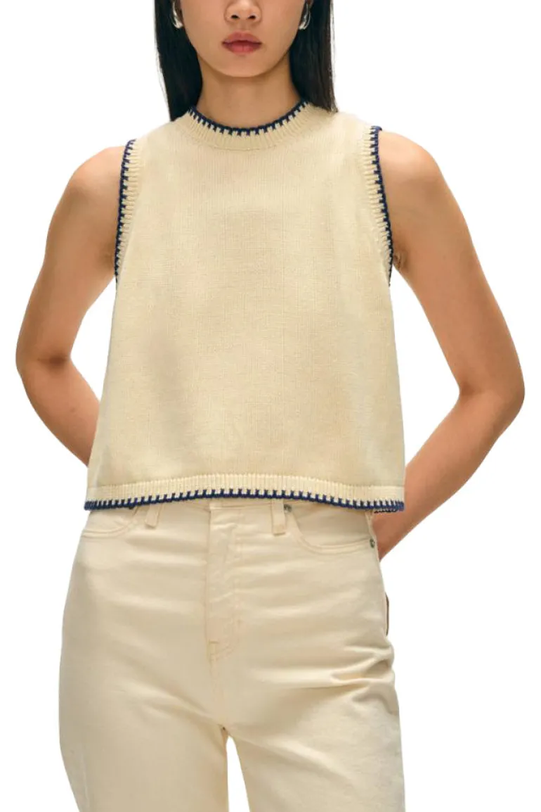 The WHITE + WARREN Organic Cotton Blanket Trim Tank is the epitome of effortless sophistication and luxurious comfort.