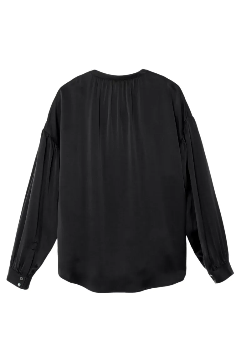 - Long blouson sleeves